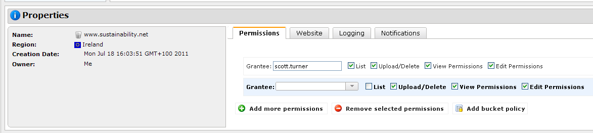 Other users can be given access to the website by using the permissions. This can be found by going to the list of buckets and right click to get permissions.